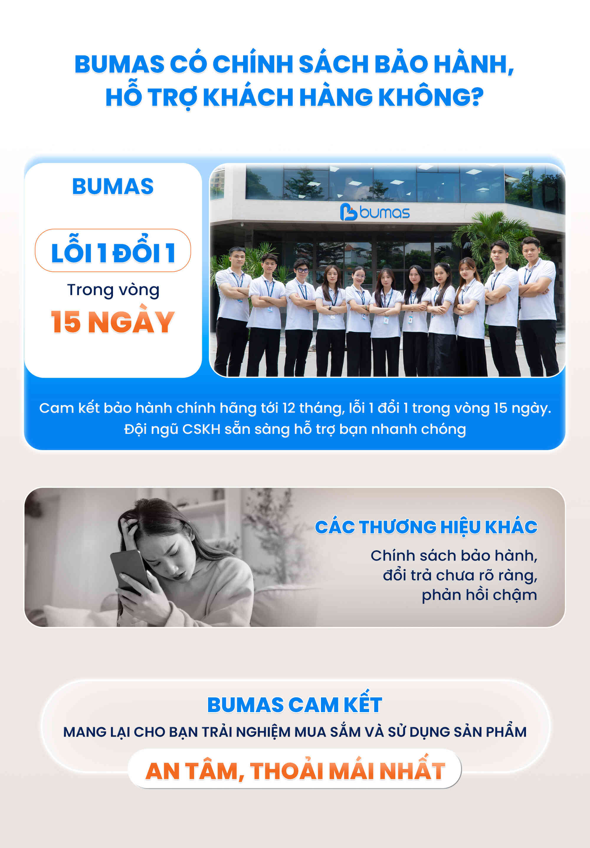 3. Tất cả các sản phẩm của BUMAS đều được bảo hành chính hãng 6 tháng