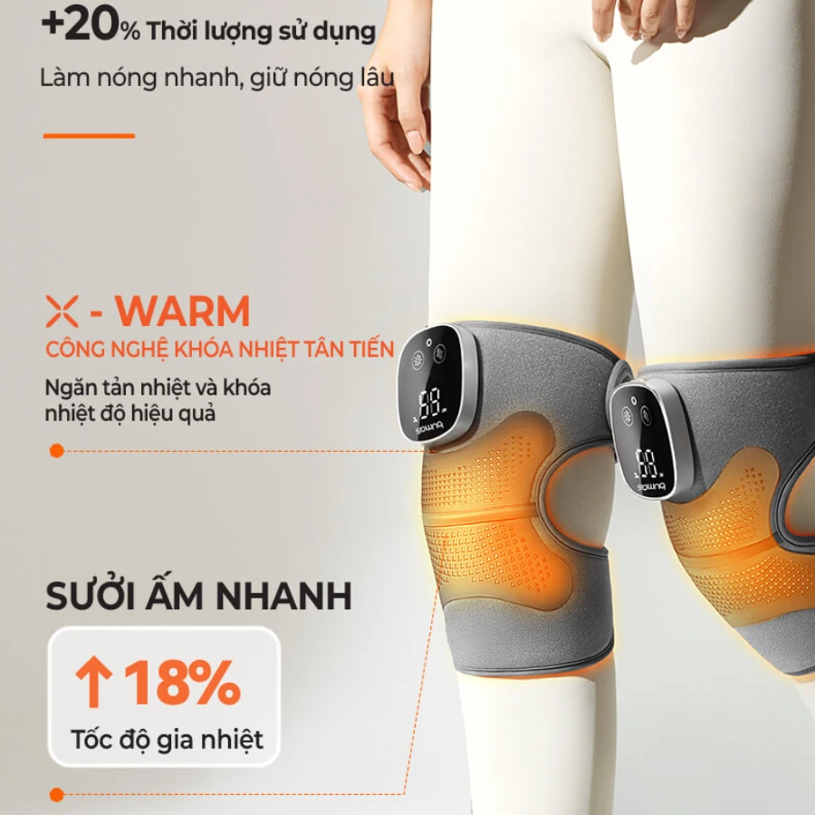 Điểm khác biệt lớn của BUMAS M6 Pro nằm ở công nghệ khóa nhiệt X-Warm thế hệ mới, có khả năng giữ nhiệt ổn định và ngăn thất thoát ra bên ngoài. Nhờ đó, vùng đầu gối được làm ấm đều, hỗ trợ giãn cơ, giảm sưng đau và tăng độ linh hoạt cho khớp, đặc biệt hữu ích vào mùa lạnh hoặc khi thời tiết thay đổi thất thường.