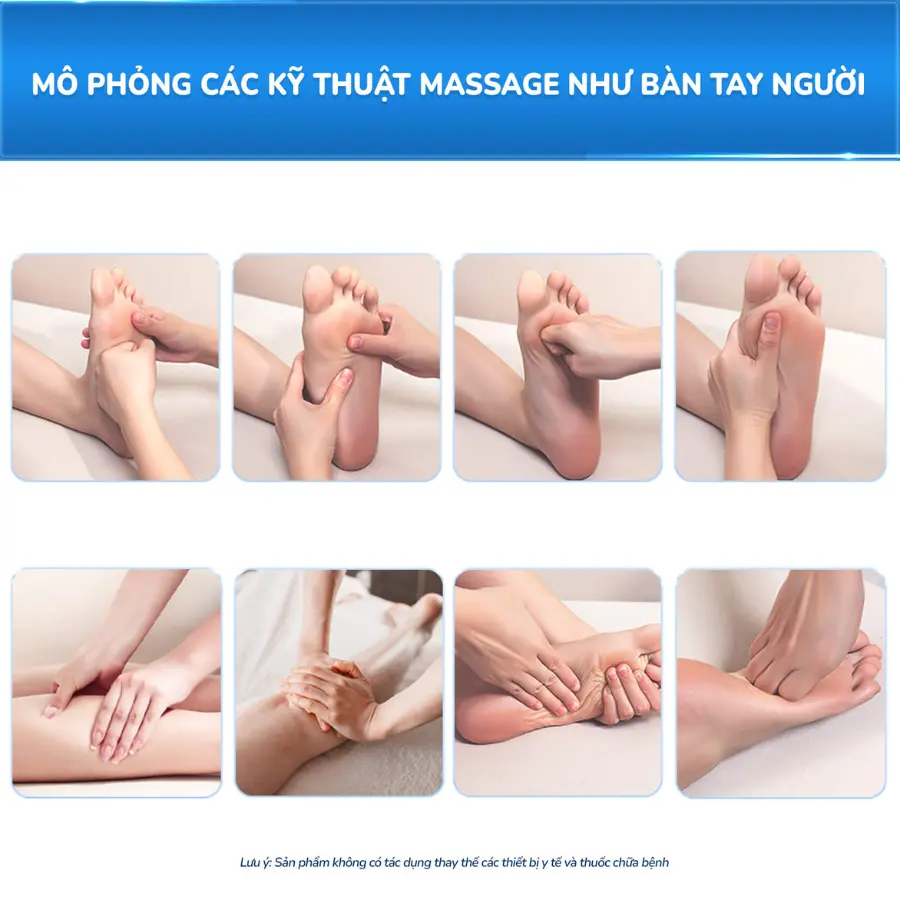 Điều khiến BUMAS M15 chiếm được lòng tin người dùng là hiệu quả thư giãn rõ rệt chỉ sau 10–15 phút sử dụng mỗi ngày. Sản phẩm được trang bị hệ thống túi khí đa điểm kết hợp con lăn 3D và chế độ chườm nóng thông minh, giúp mô phỏng cảm giác xoa bóp – bóp nhả tự nhiên như bàn tay thật. Nhờ đó, người dùng cảm nhận được sự thư giãn sâu, giảm nhanh cảm giác nặng chân, tê cứng hay sưng mỏi do tuần hoàn kém.