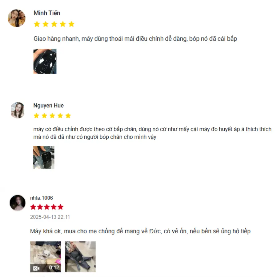 Nhiều người dùng đã để lại nhận xét tích cực cho M5: đại đa số phản ánh rằng cảm giác “như được bóp chân thật” và “giảm nhanh cảm giác mỏi, tê sau khi đứng hoặc ngồi lâu”.