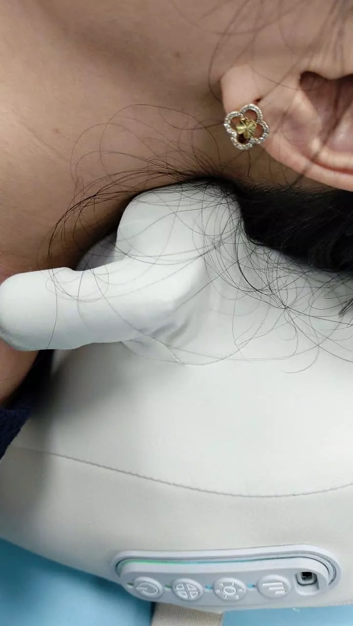 Trông cái thiết kế nó là lạ, có 2 cái càng như càng cua. Mà nó bóp đúng vào mấy cái huyệt ở cổ rất thư giãn nhé