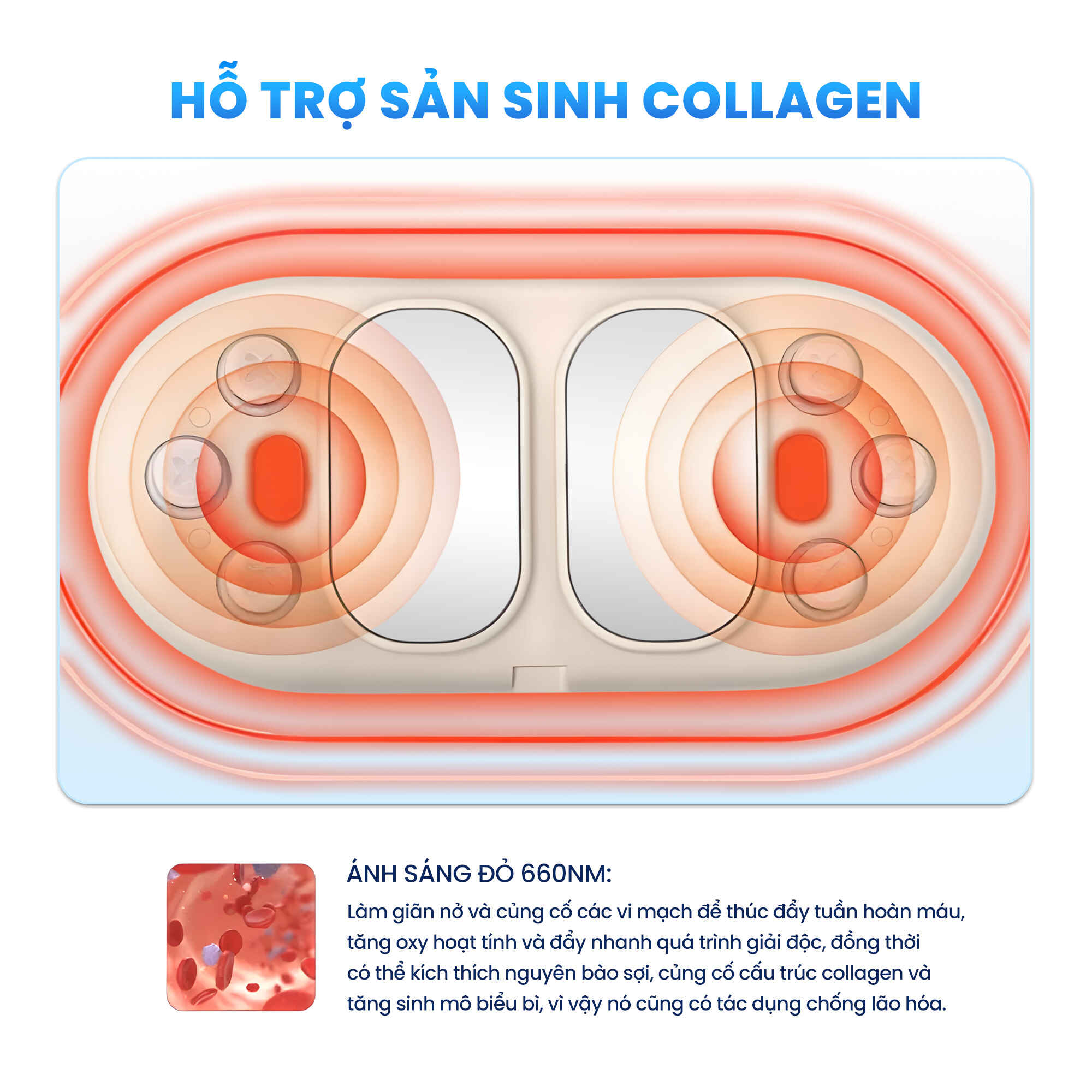 - Sử dụng bước sóng 660nm thẩm thấu sâu vào da giúp lưu thông tuần hoàn, thúc đẩy quá trình thải độc