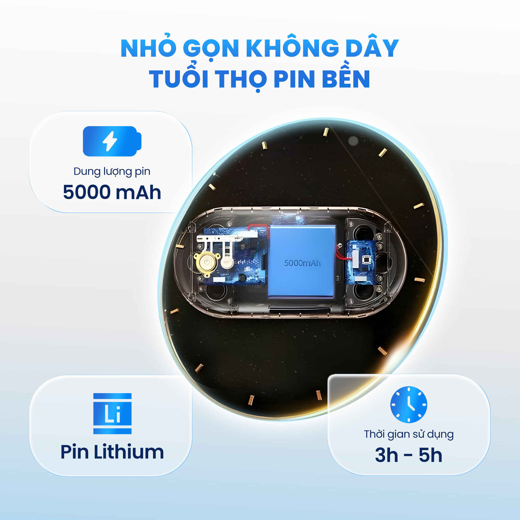 - Dung lượng pin 5000 MAH, có thể dụng được trong khoảng 3-5h