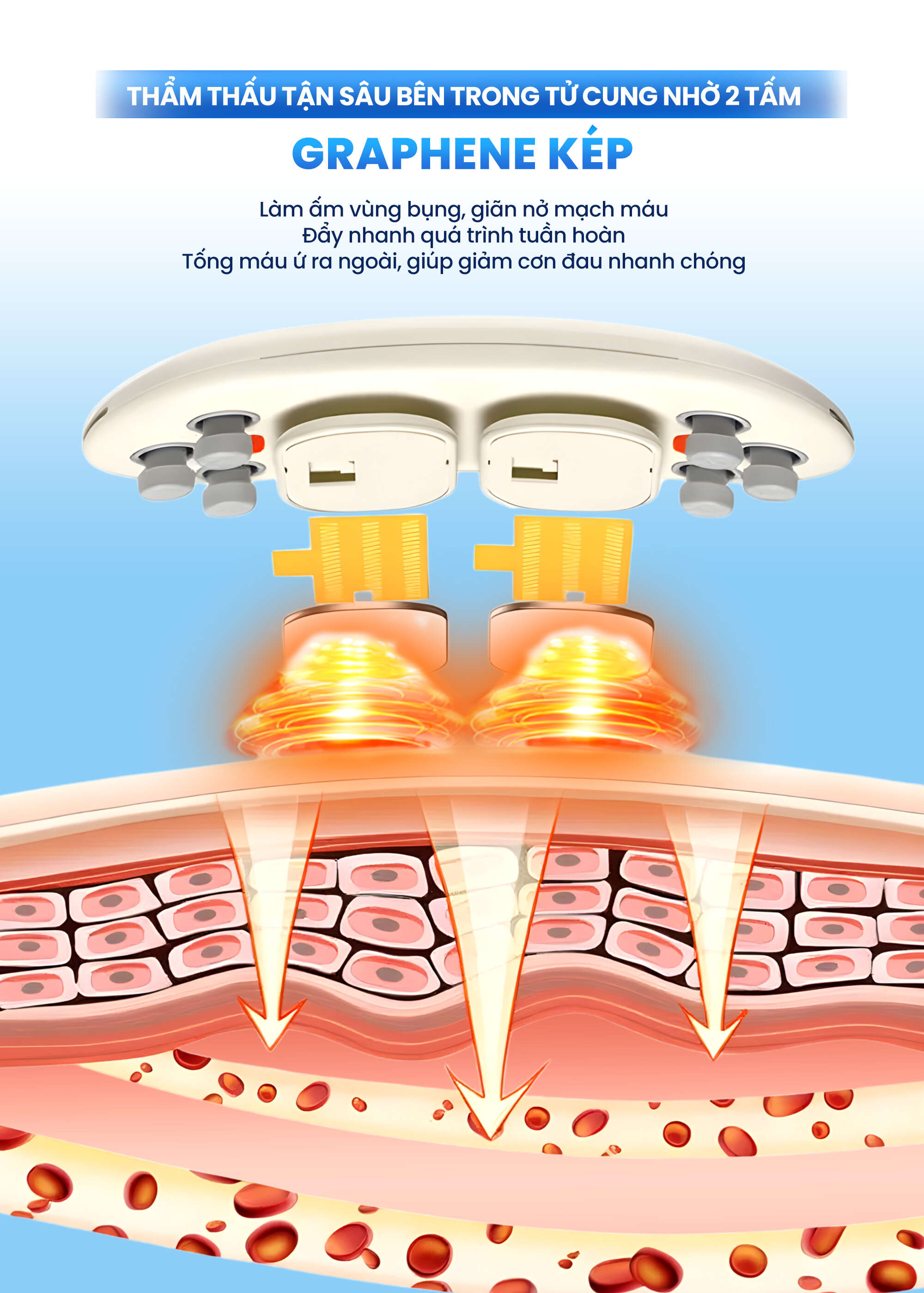Đai sử dụng công nghệ Geraphene cùng chiếu xạ ánh sáng đỏ kép ngoài giúp làm ấm bụng còn đẩy nhanh lưu thông máu tại tử cung, đồng thời phục hồi dạn nứt da cho phụ nữ sau sinh