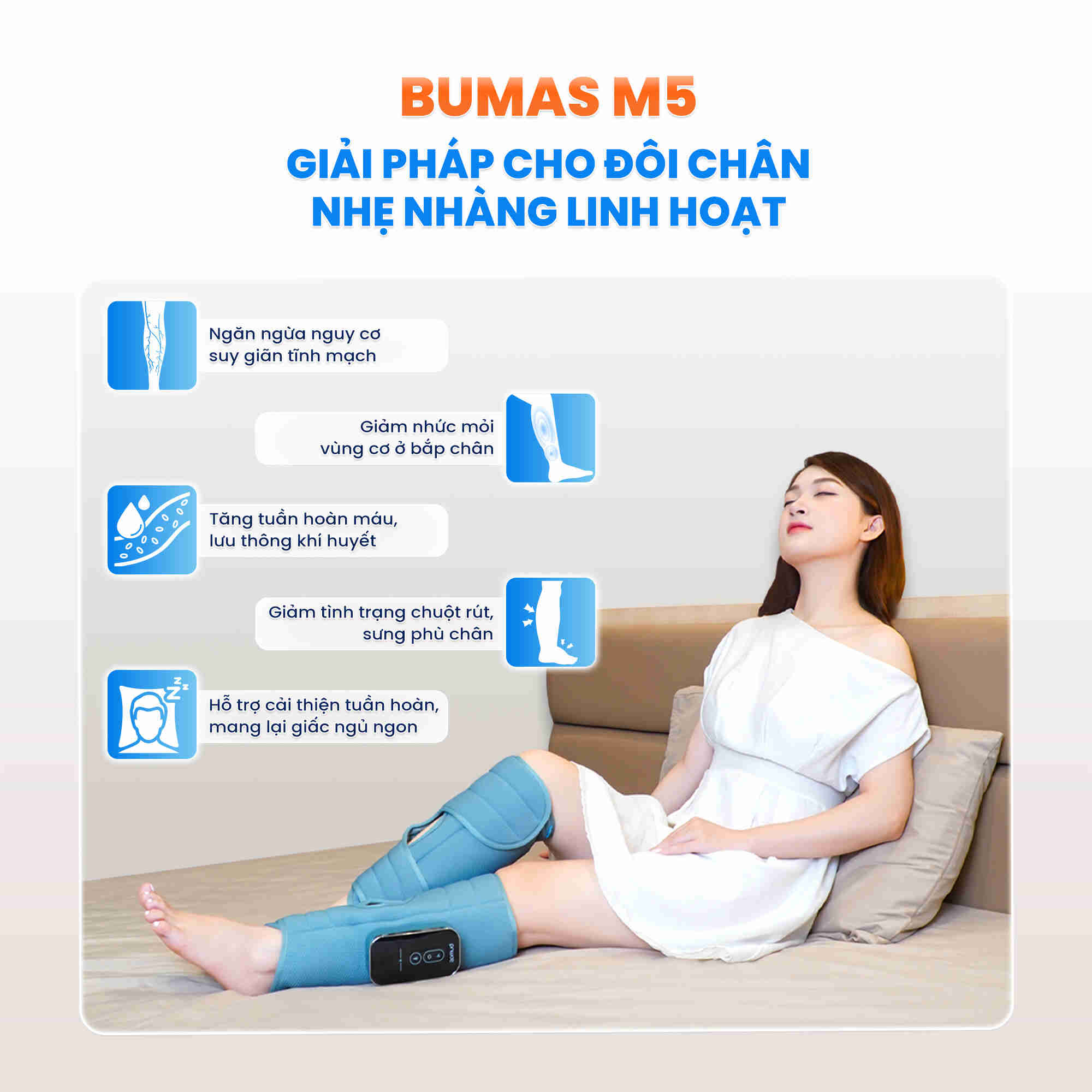 Ngoài massage bắp chân BUMAS M5 còn có thể hỗ trợ massage bắp tay