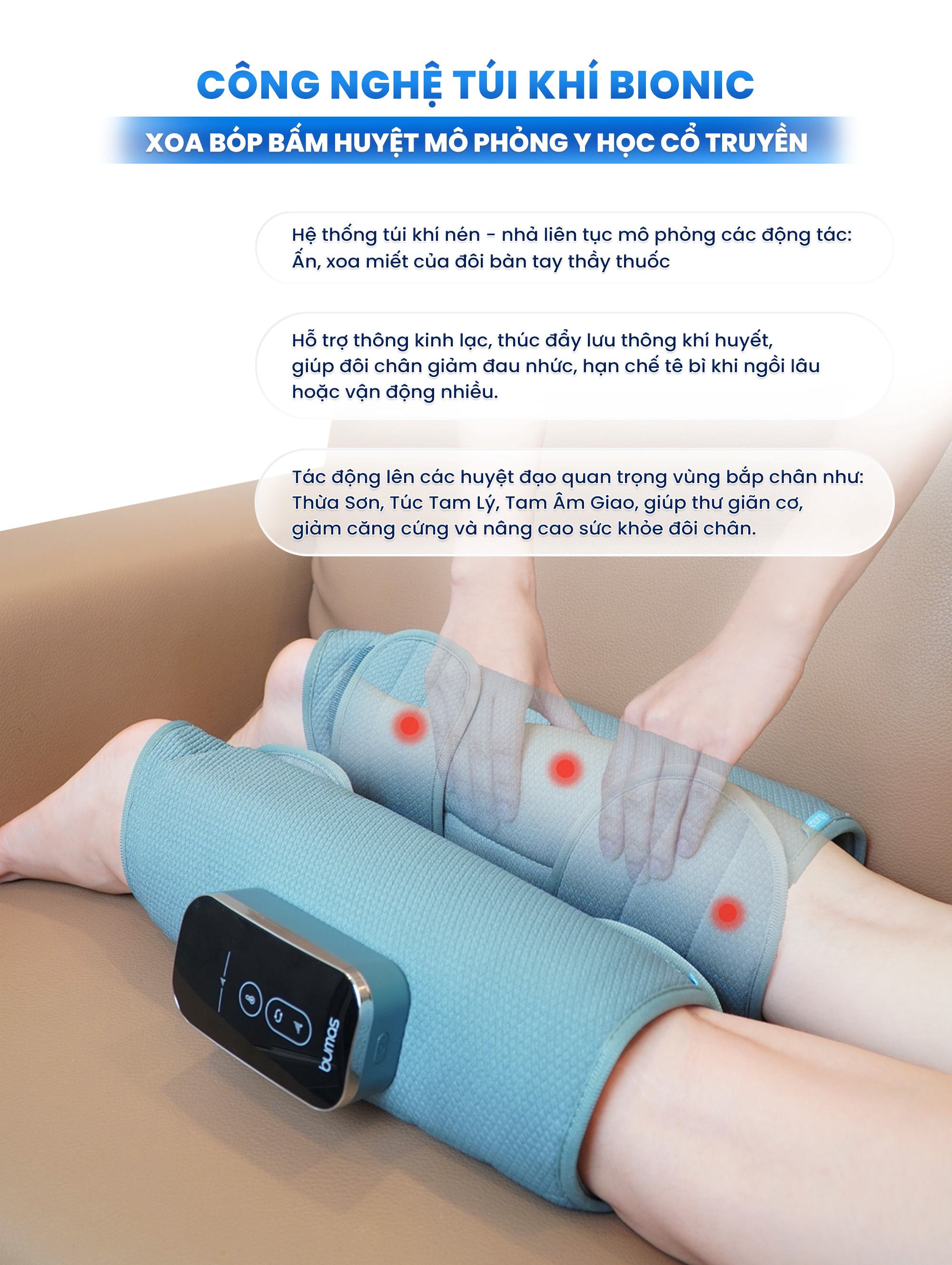 - CÔNG NGHỆ TÚI KHÍ BIONIC: Trải nghiệm sự massage mạnh mẽ với công nghệ túi khí Bionic, áp suất khí massage sâu và hiệu quả hơn bao giờ hết.
