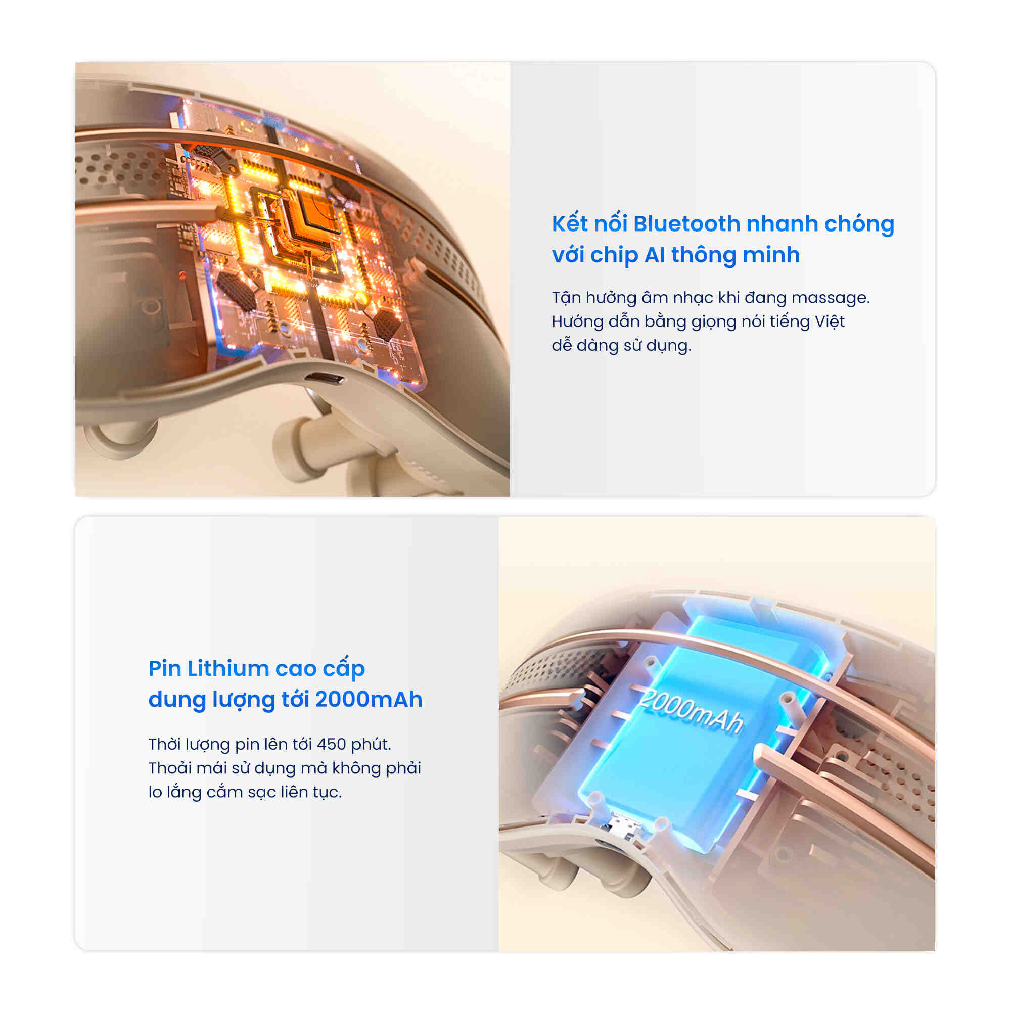 - Kết nối Bluetooth nhanh chóng với các thiết bị thông minh để phát nhạc khi đang massage. Thư giãn toàn diện từ thể chất đến tinh thần.