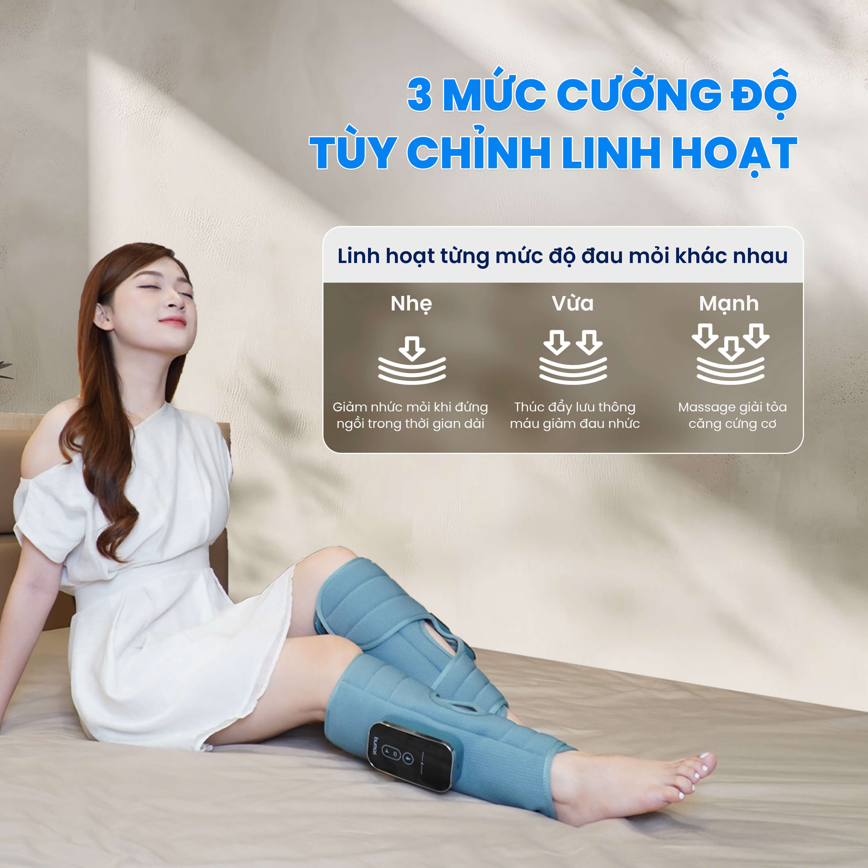 - THƯ GIÃN TỐI ĐA: Bộ phận massage được thiết kế ôm sát chân với phần vải bền, thông thoáng. Miếng dán chắc chắn dễ điều chỉnh và không bị bung trong quá trình bơm nén khí.